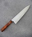 Ein 23 cm Gyuto mit einer Schneide aus 1.2562, Seitenlagen aus 1.2767 und einem Griff aus Wüsteneisenholz. Lesen Sie mehr..