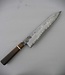 Dieses 23 cm Gyuto hat eine drei Lagen Klinge mit einer Schneide aus ApexUltra und Seitenlagen aus einem spätmittelalterlichen Maueranker von einer Norddeutschen Burg. Das historische Eisen habe ich für einen schöneren Kontrast zusätzlich raffiniert. Der Griff besteht aus Eichenholz von einem mittelalterlichen Brunnen mit einem Spacer aus Rentiergeweih.