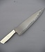Ein 24 cm Gyuto mit einer Schneide aus ApexUltra, Seitenlagen aus 1.2767 und einem Griff aus Bein (Mittelfußknochen des Europäischen Rinds). Lesen Sie mehr..